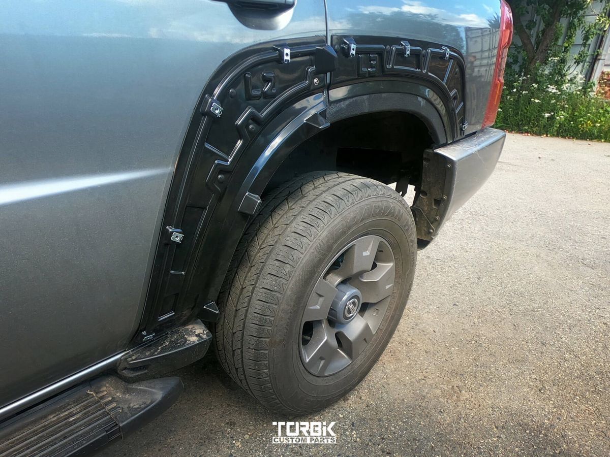 Расширители выполнены из ударопрочного LLDPE (ЭЛАСТОР) пластика, рассчитанного на жёсткую эксплуатацию. Он не становится хрупким на морозе, не размягчается на жаре и нормально переносит контакт с ветками, камнями и грязью. Это не декоративный пластик, а рабочий элемент для внедорожника.